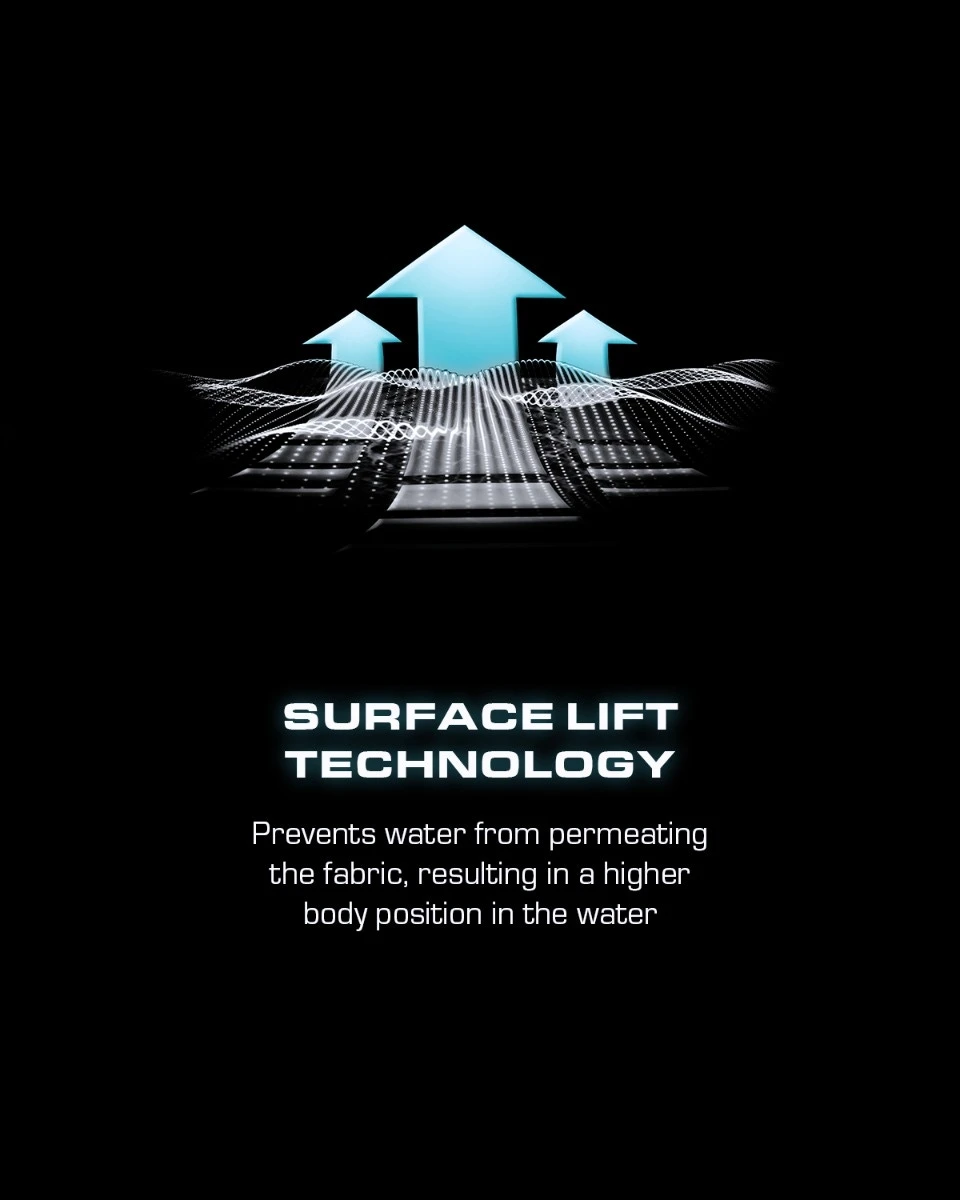 This high compression tech suit utilizes Shockwave Dual Fabrication to create targeted muscle stabilization and added structured flexibility, controlled muscle undulation, and reduced drag, while boosting natural lift for optimized positioning in the water. Shockwave’s Hamstring Snapback Taping™ technology is an innovation that allows a return on the already exerted energy of the swimmer by targeting and compressing the hamstring during the swimmer’s upkick to create a return of energy, propelling him and increasing distance per kick.