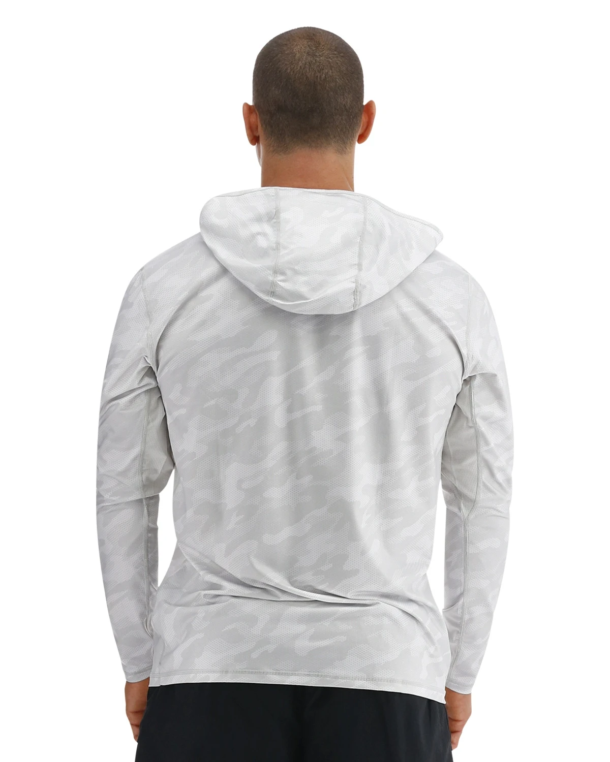 The TYR SunDefense Vented Hooded Shirt – Camohex has the most effective UV protectant coverage for outdoor adventurists.